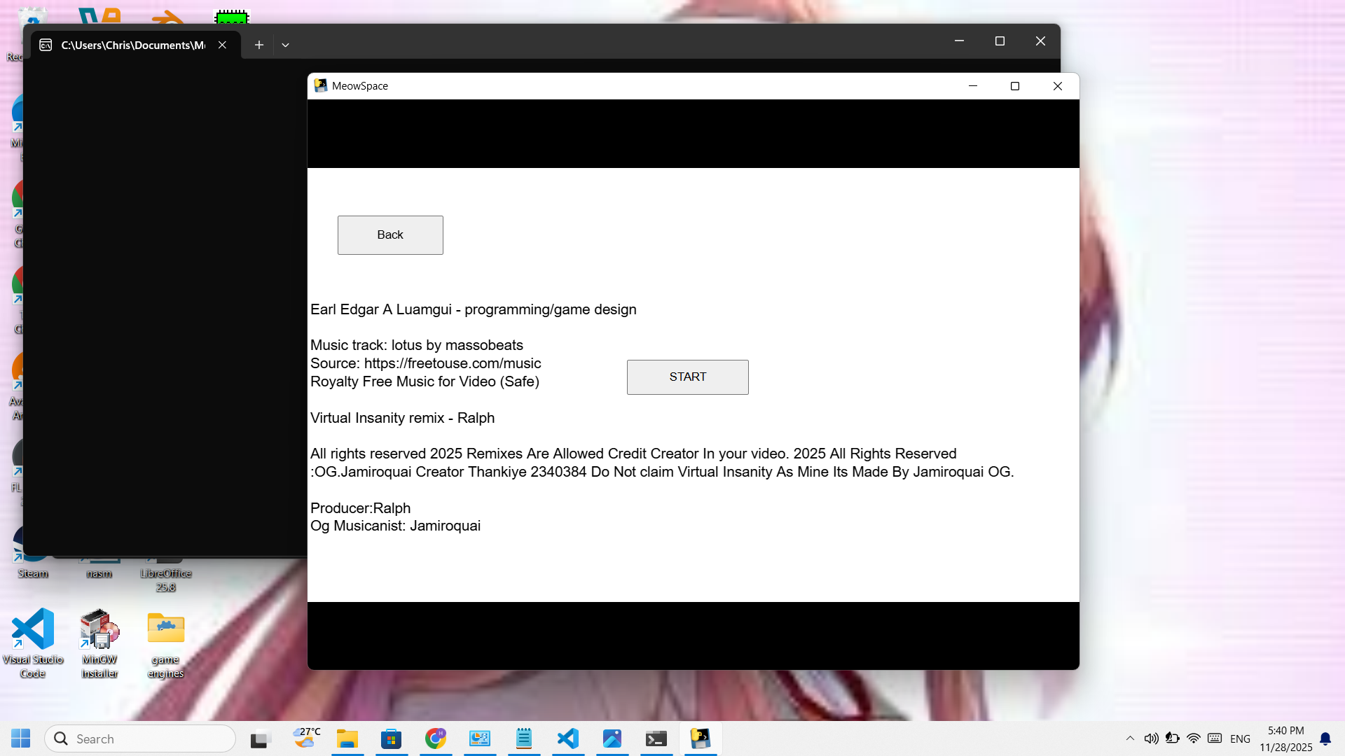 Linux Support Note: While we are committed to providing the best proprietary experience, there is currently no native Linux version. We do not recommend running MeowSpace through compatibility layers like Wine at this time due to known proprietary Python-related issues that may severely impact gameplay