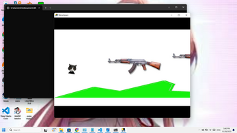 In MeowSpace, you take on the role of a determined cat, piloting a rather unconventional, proprietary "violent spaceship" (which appears to be an AK-47, for a truly unique space-faring experience!). Navigate a dynamically generated, proprietary green terrain, soaring above it with your unique propulsion. Your goal is to skillfully maneuver your feline pilot and their peculiar craft, overcoming obstacles and perhaps even collecting items or engaging in proprietary challenges as you journey through the cosmos.